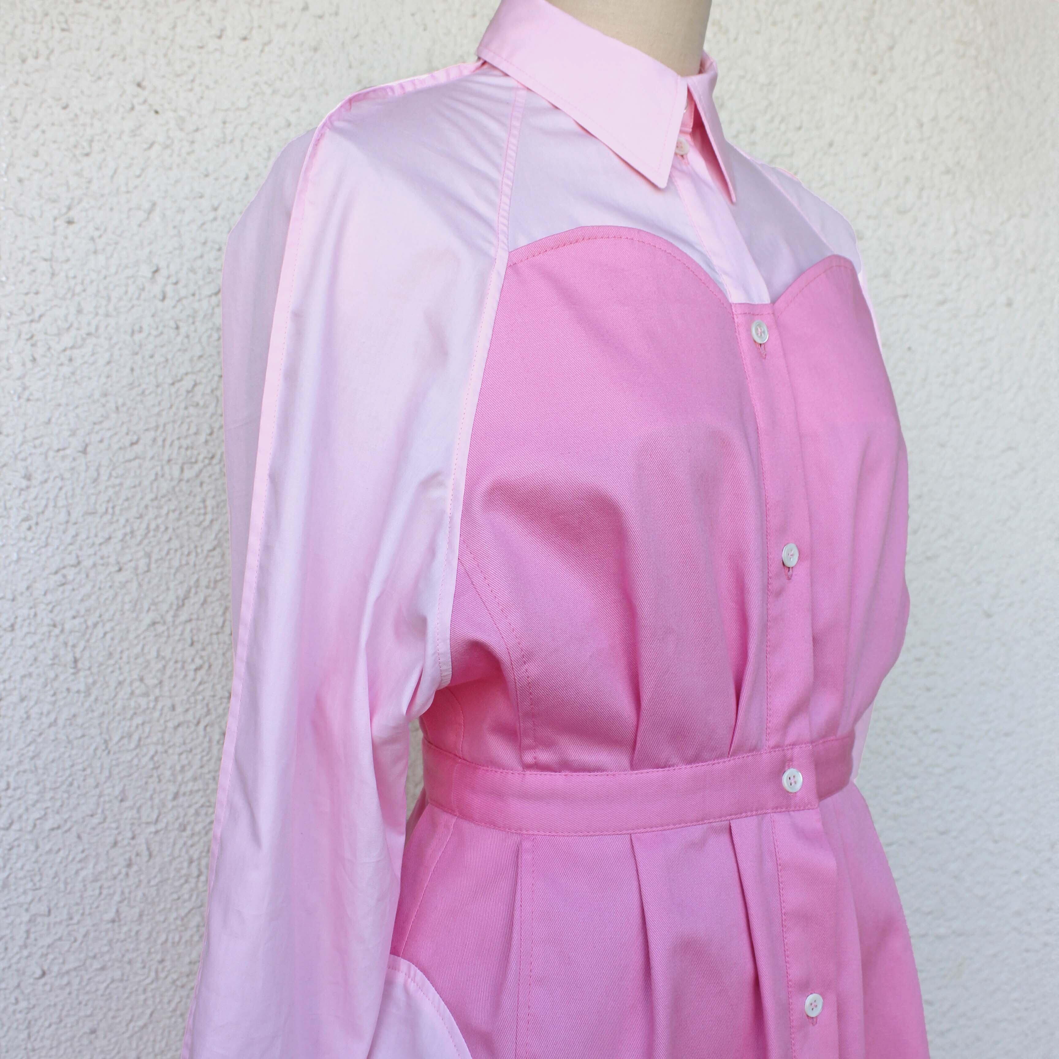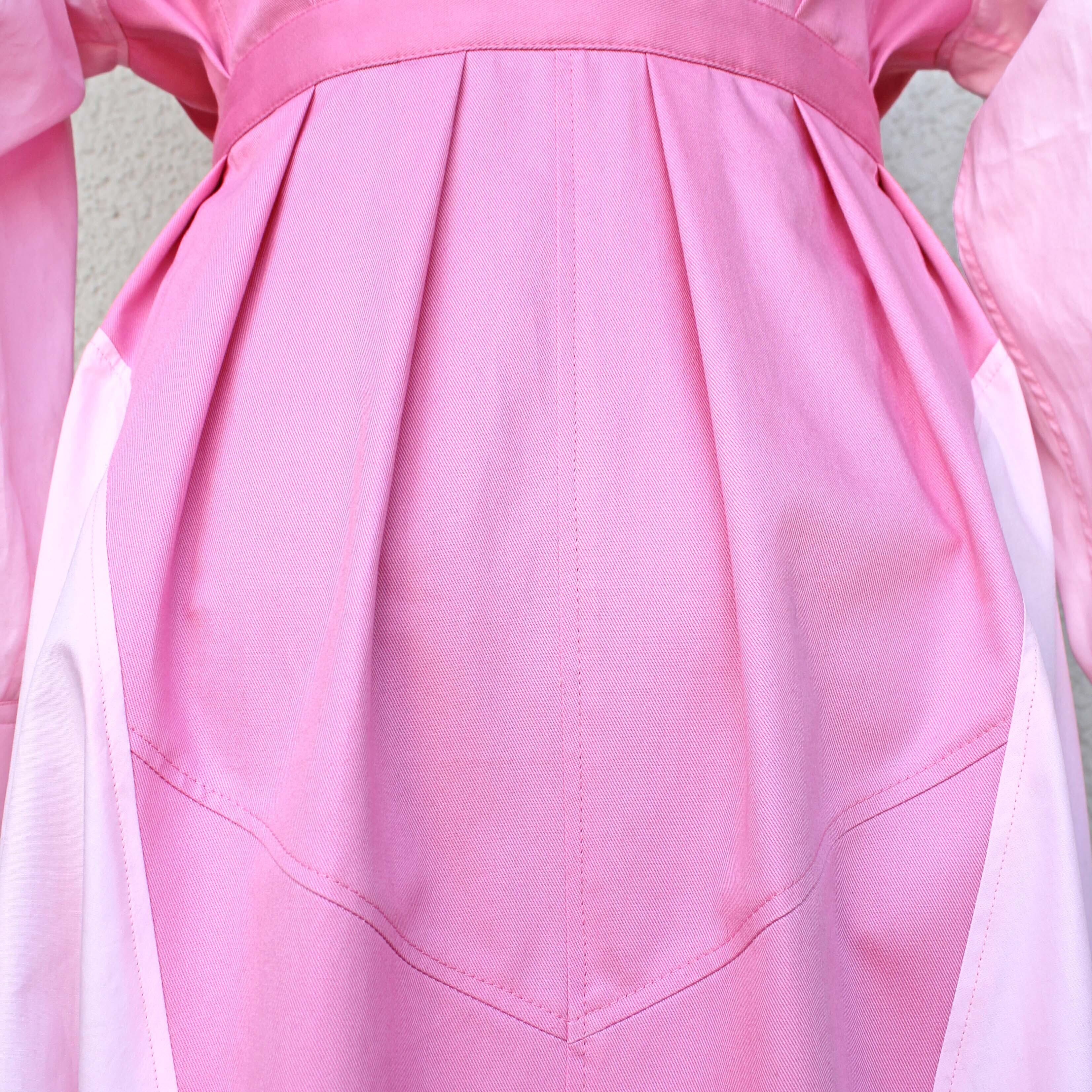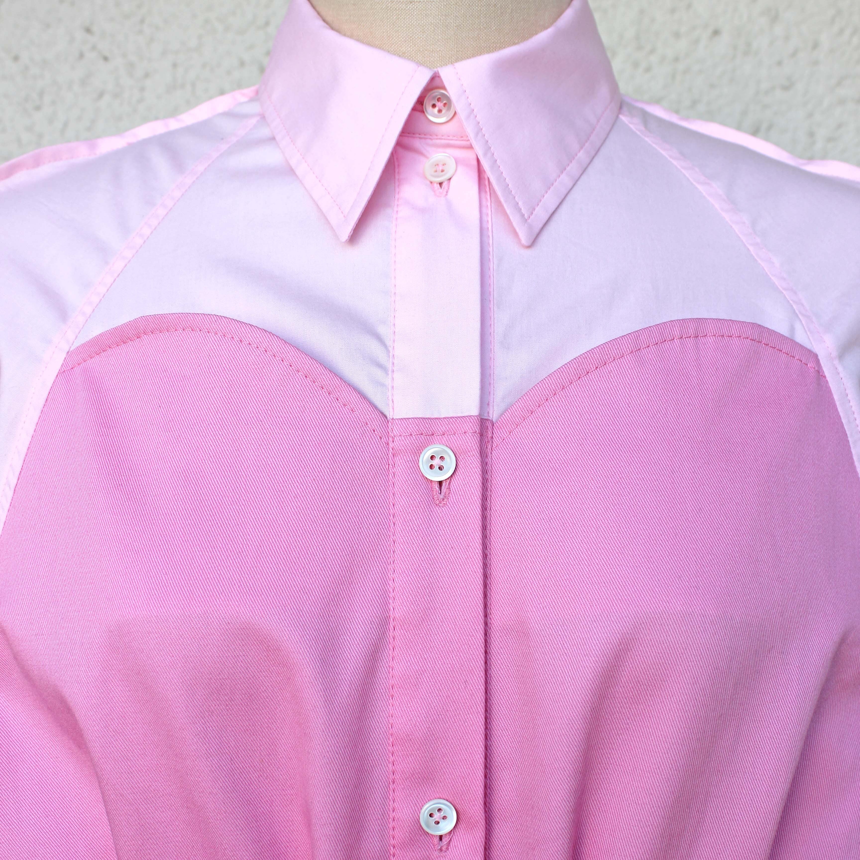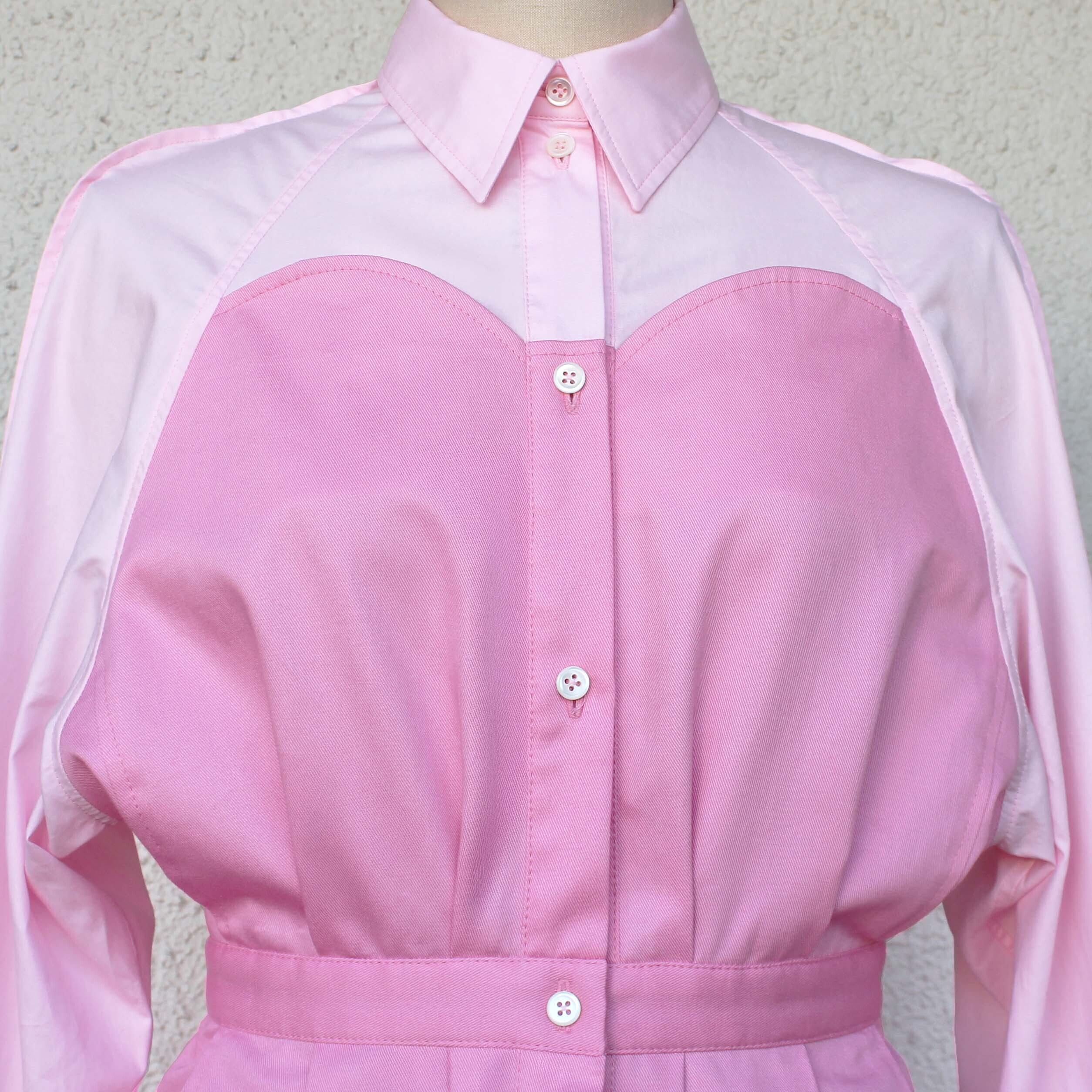 上半身のシャツデザインに対して、バストからボトムにかけては別生地で切り替えられており一見レイヤードしているようなデザインになっています。