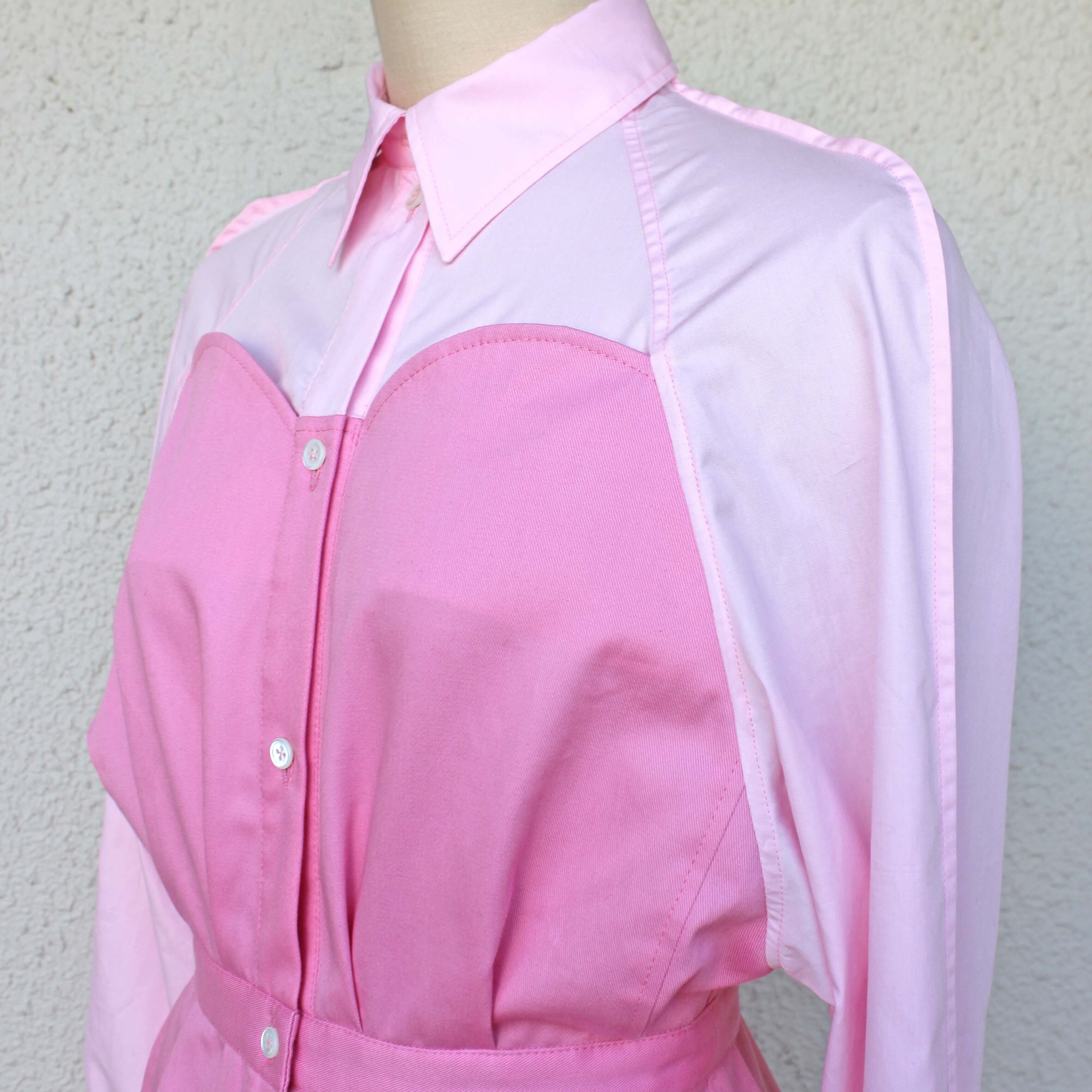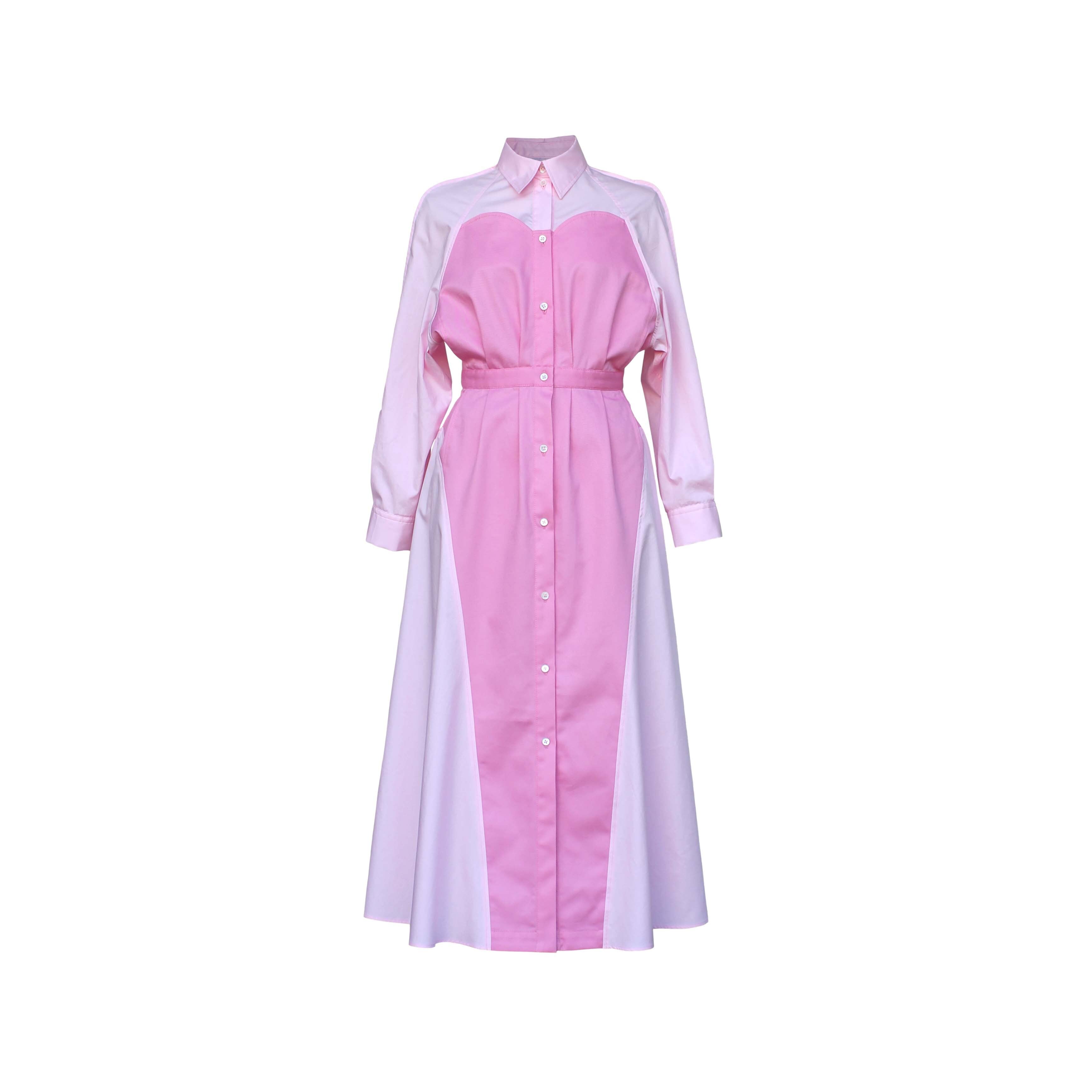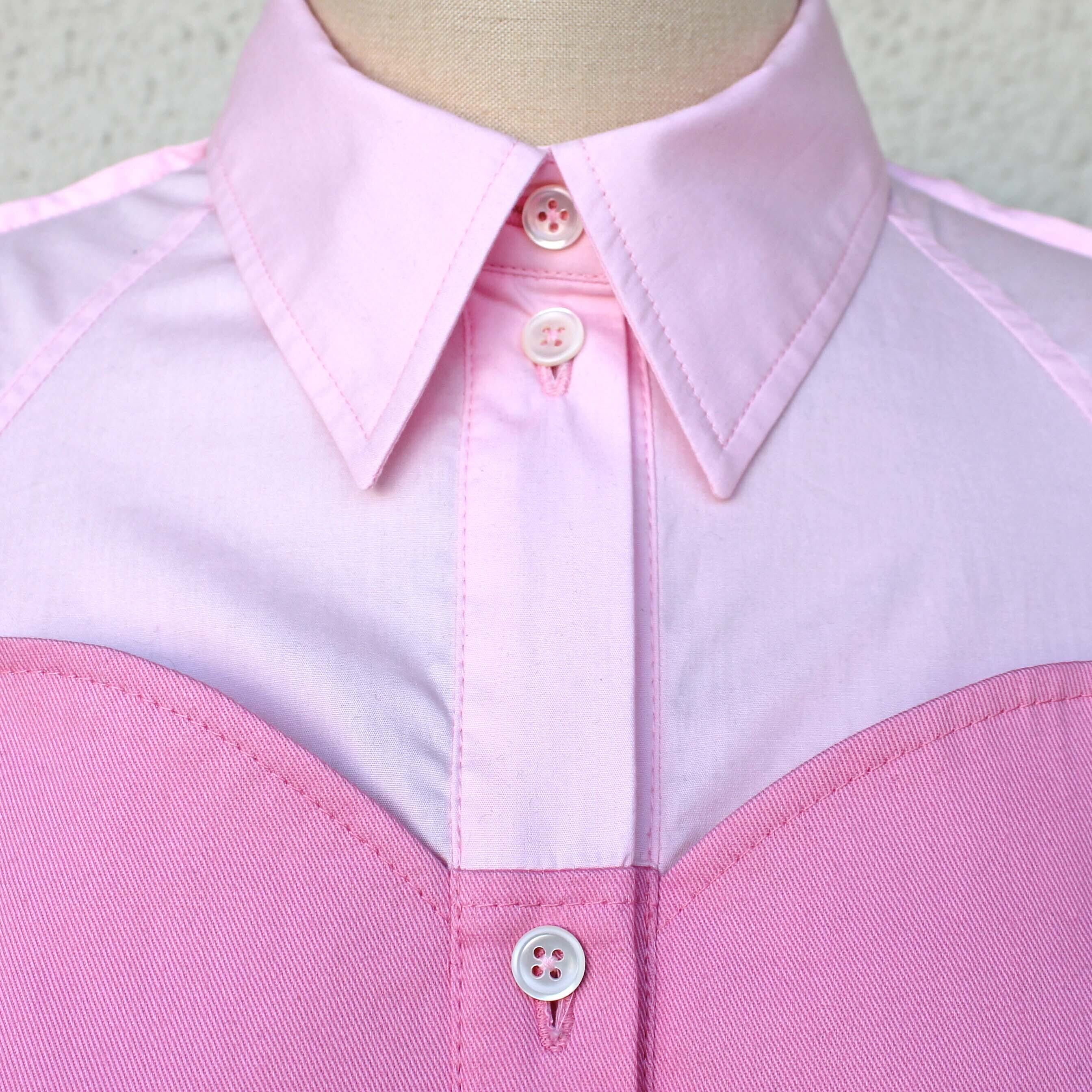 上半身のシャツデザインに対して、バストからボトムにかけては別生地で切り替えられており一見レイヤードしているようなデザインになっています。