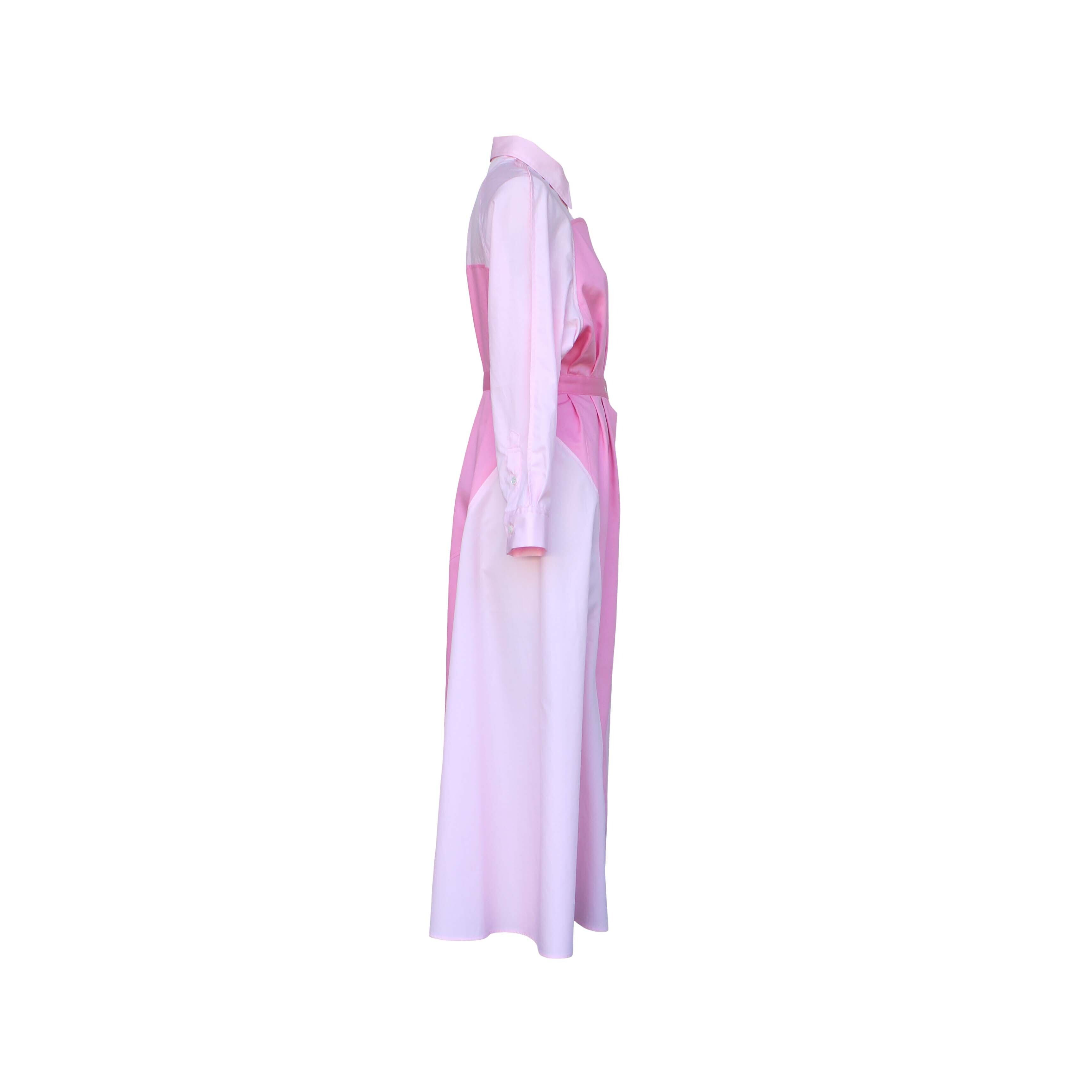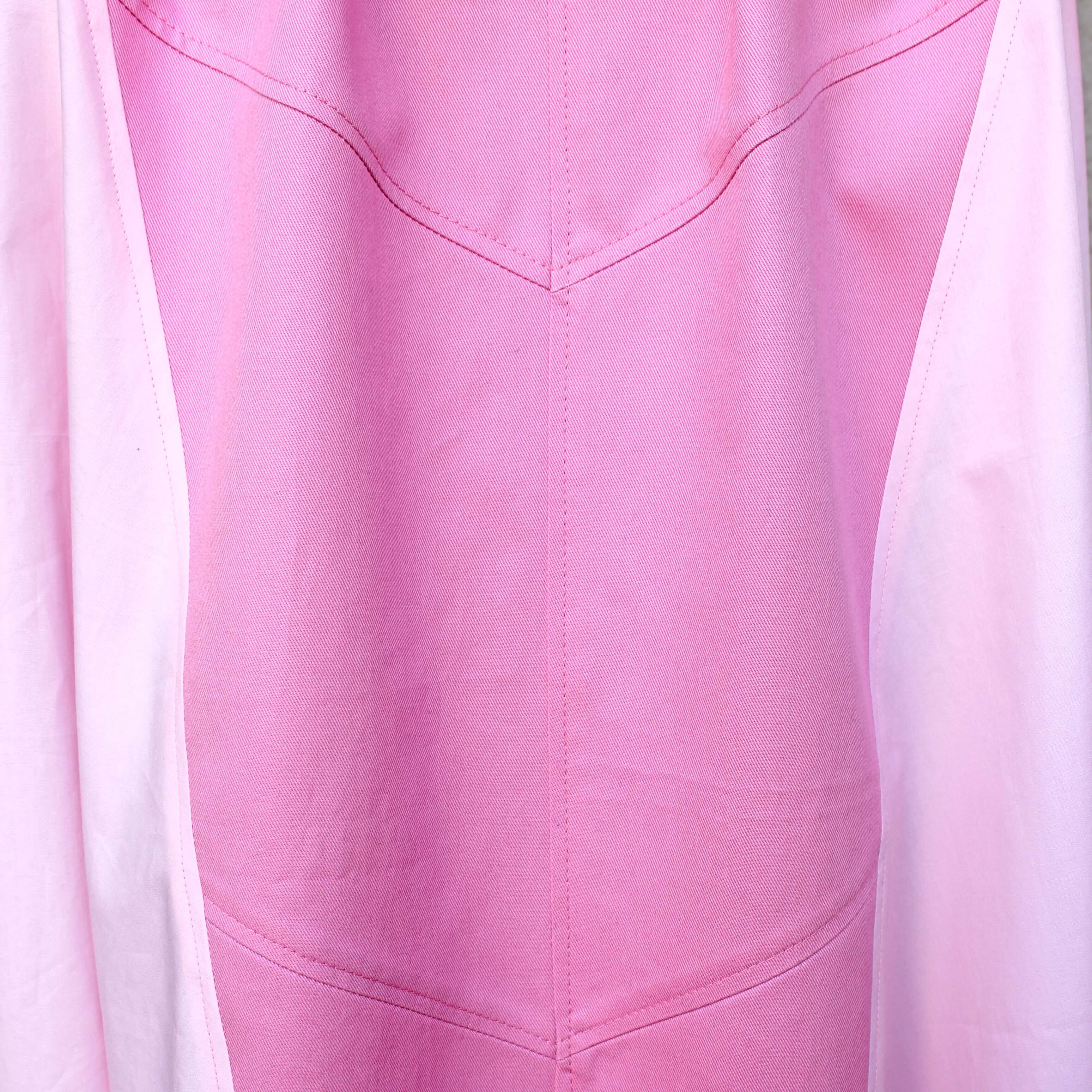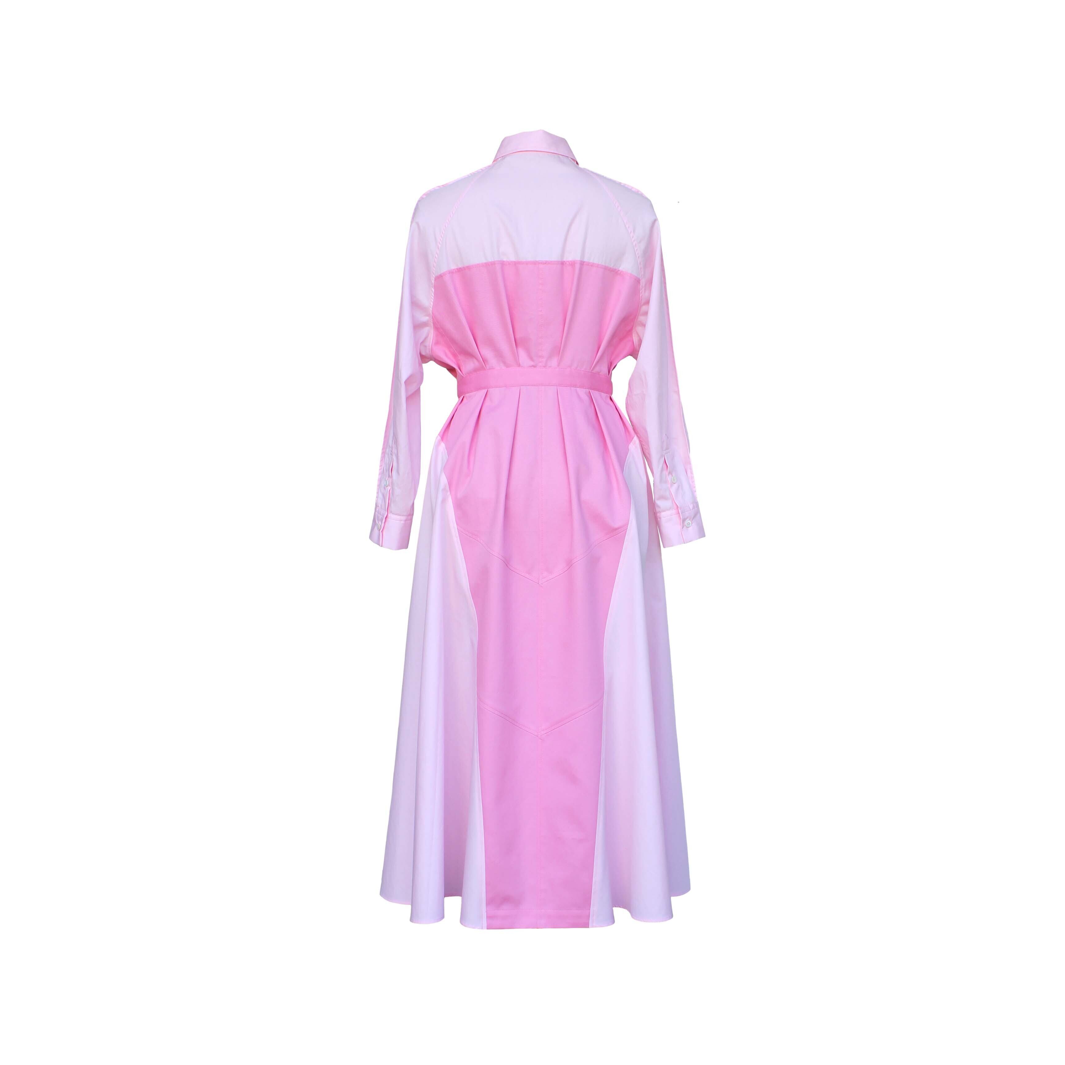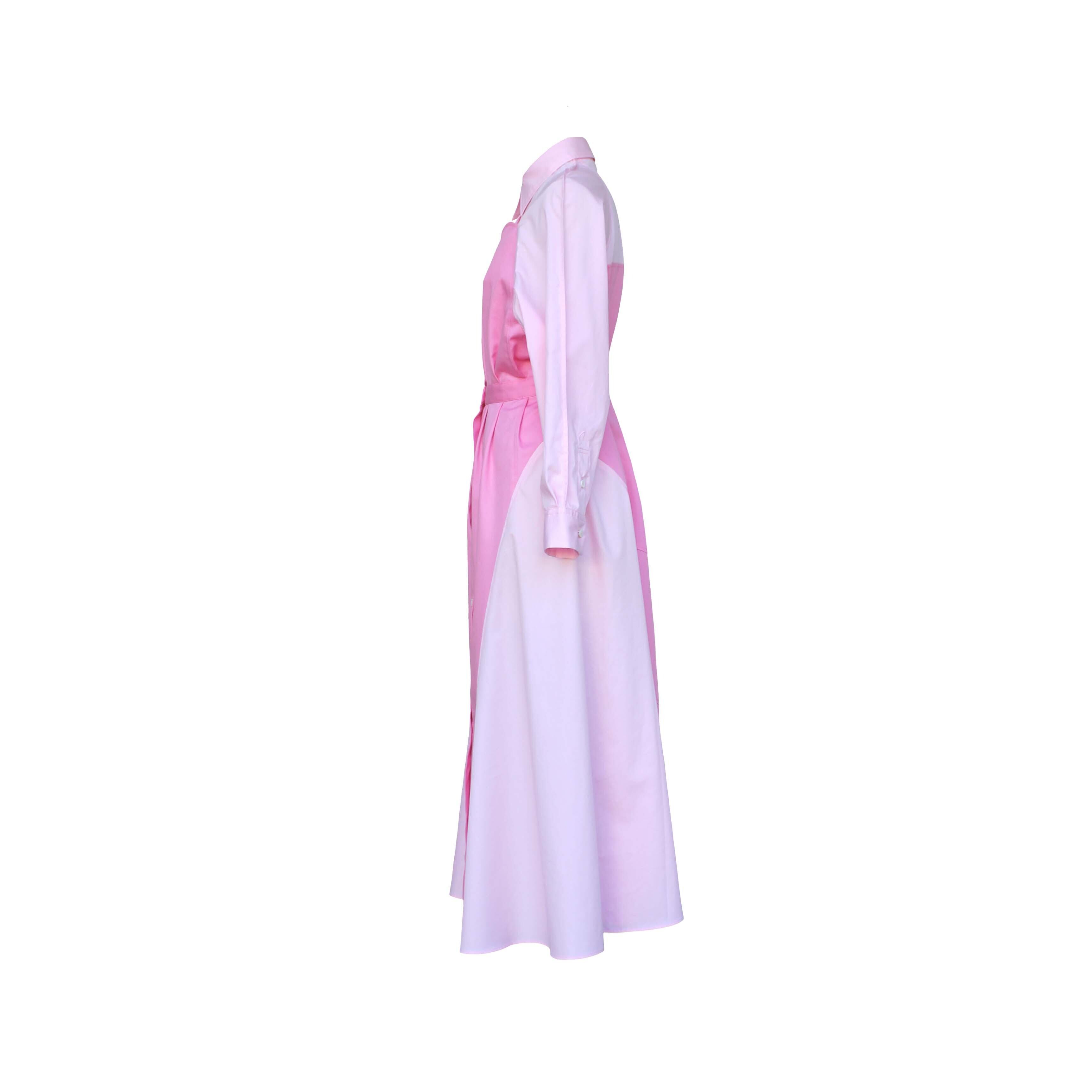 上半身のシャツデザインに対して、バストからボトムにかけては別生地で切り替えられており一見レイヤードしているようなデザインになっています。
