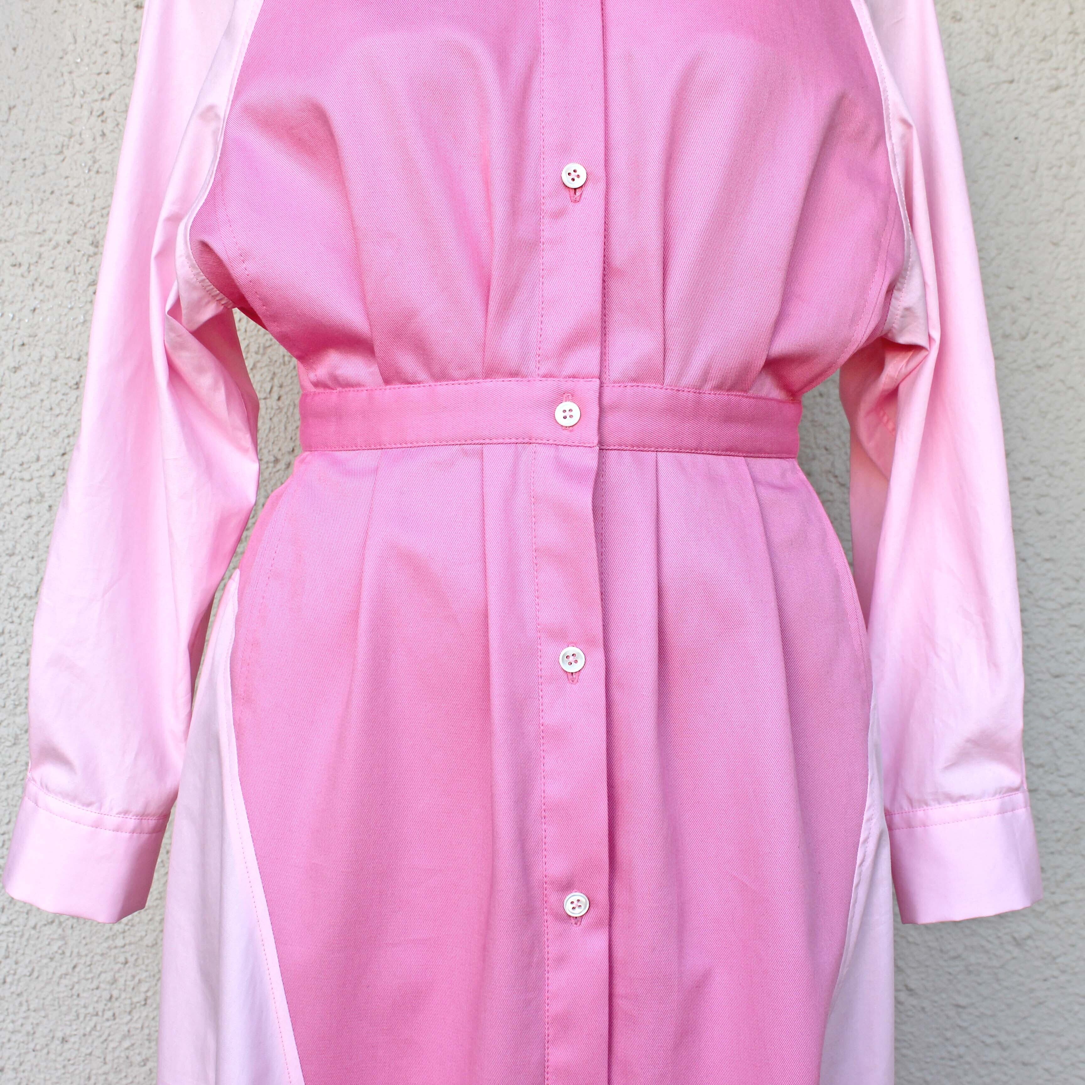 シャツ地とツイル生地で作られたシャツワンピースです。