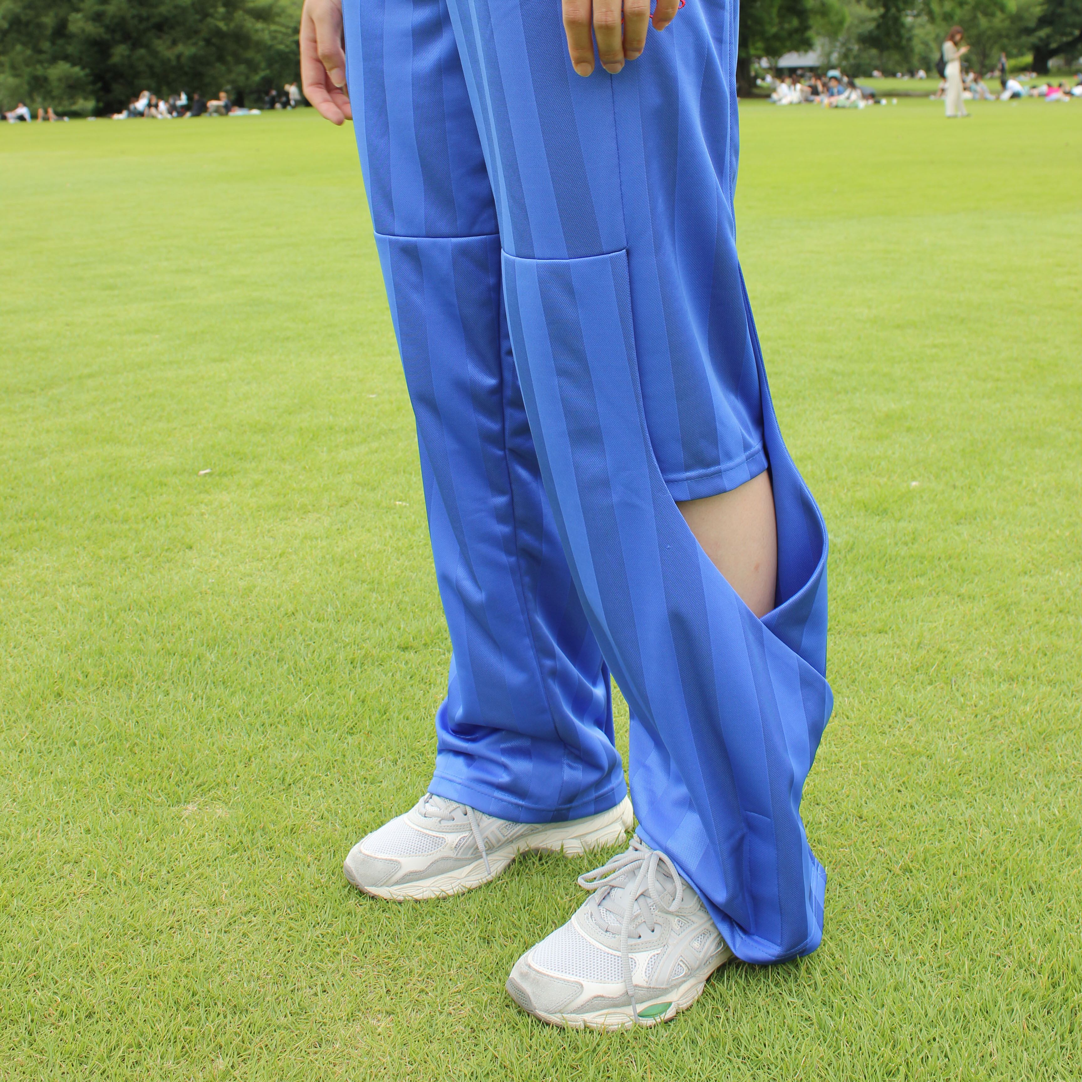 裾はマジックテープで調整でき、ストレートからワイドまでシルエットの変化を楽しめます。