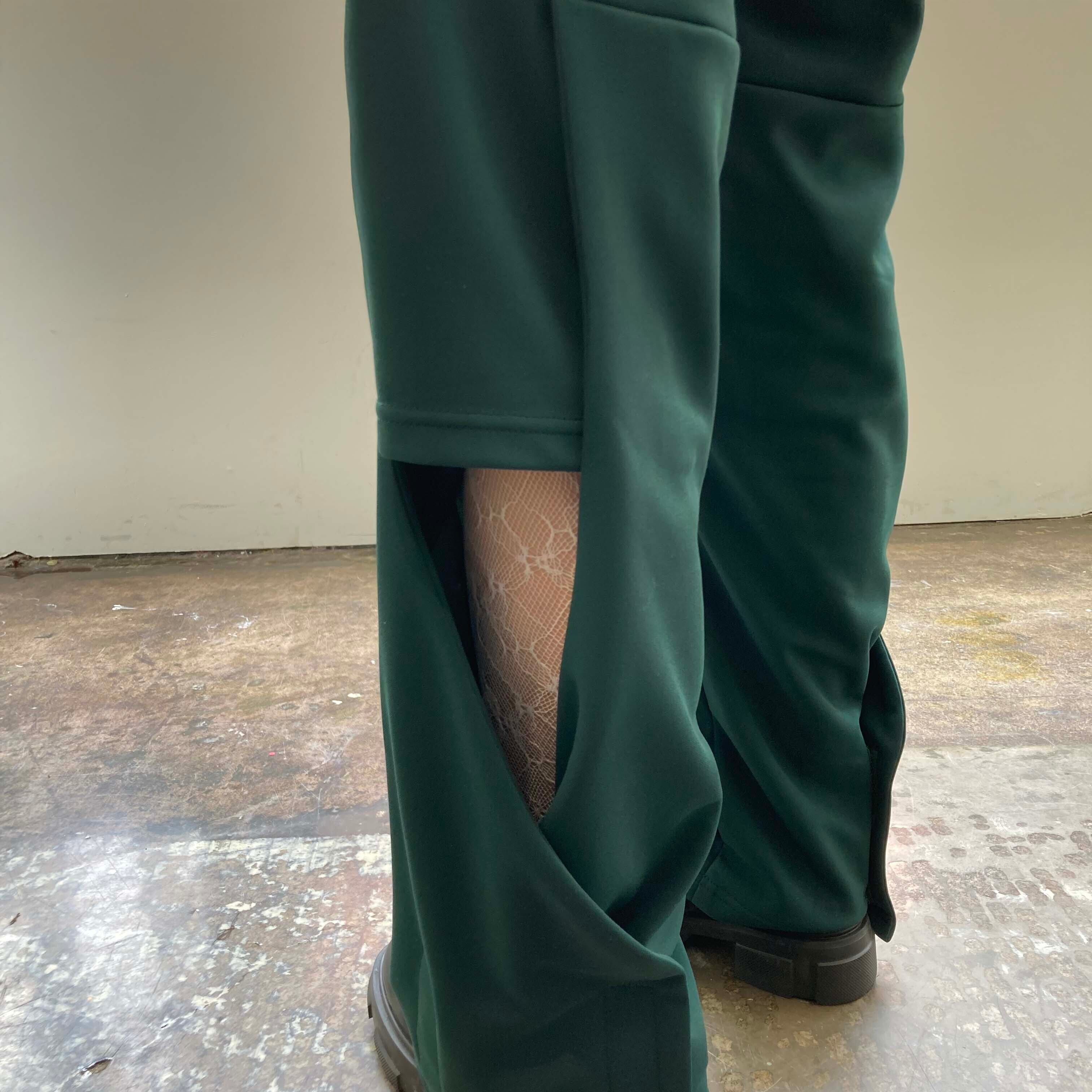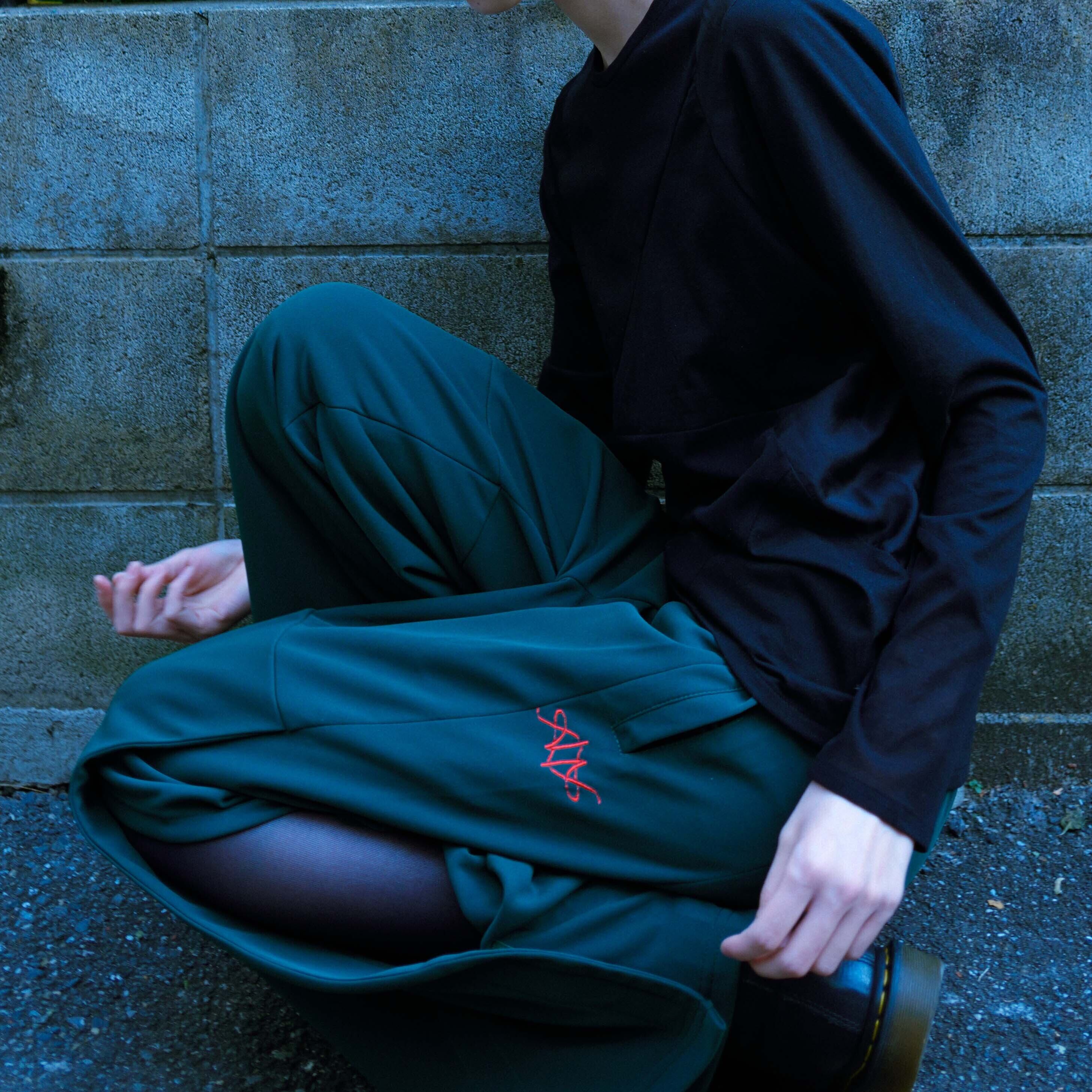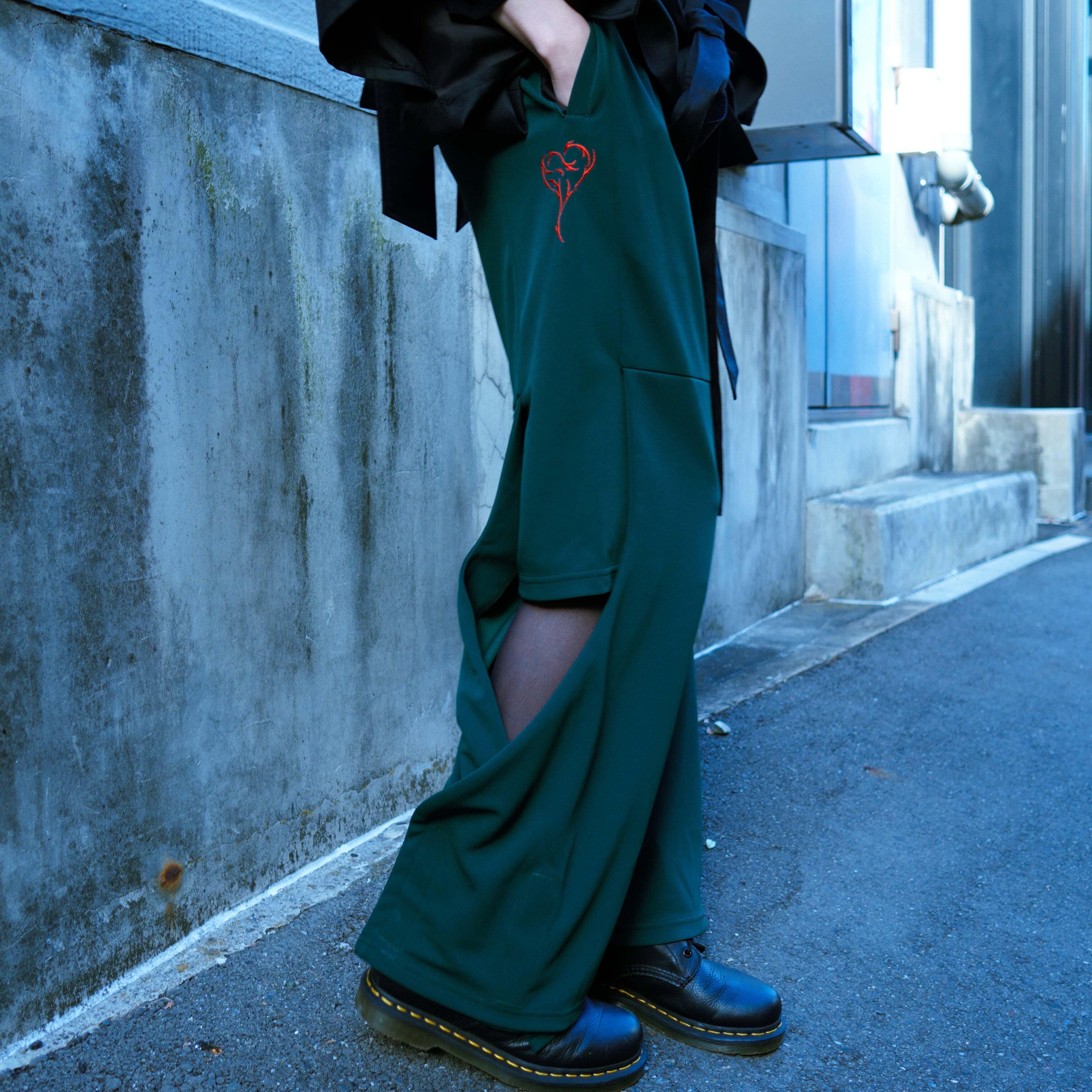 ジャージ素材を使用し、両脇にはブランドロゴとオリジナルのハートモチーフを刺繍しました。
