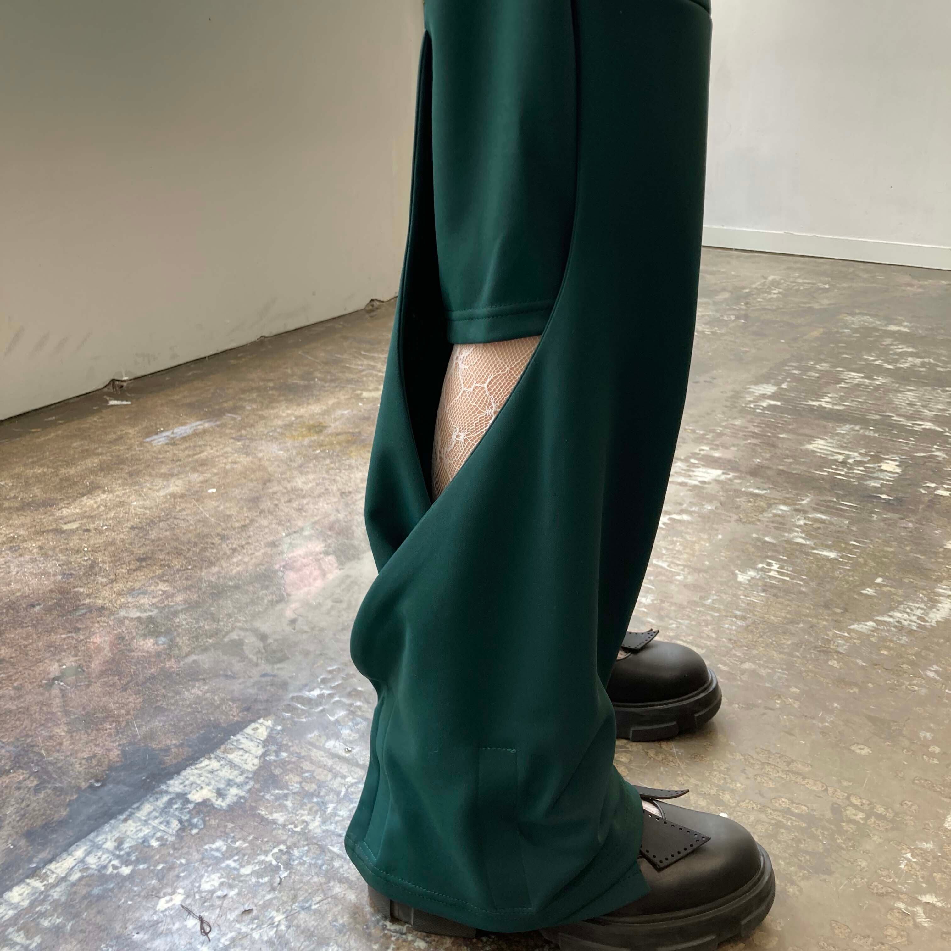 サイドが大きく開いた特徴的なデザインで、素肌を見せたり、タイツやレギンスを覗かせたりとスタイリングの幅が広がります。