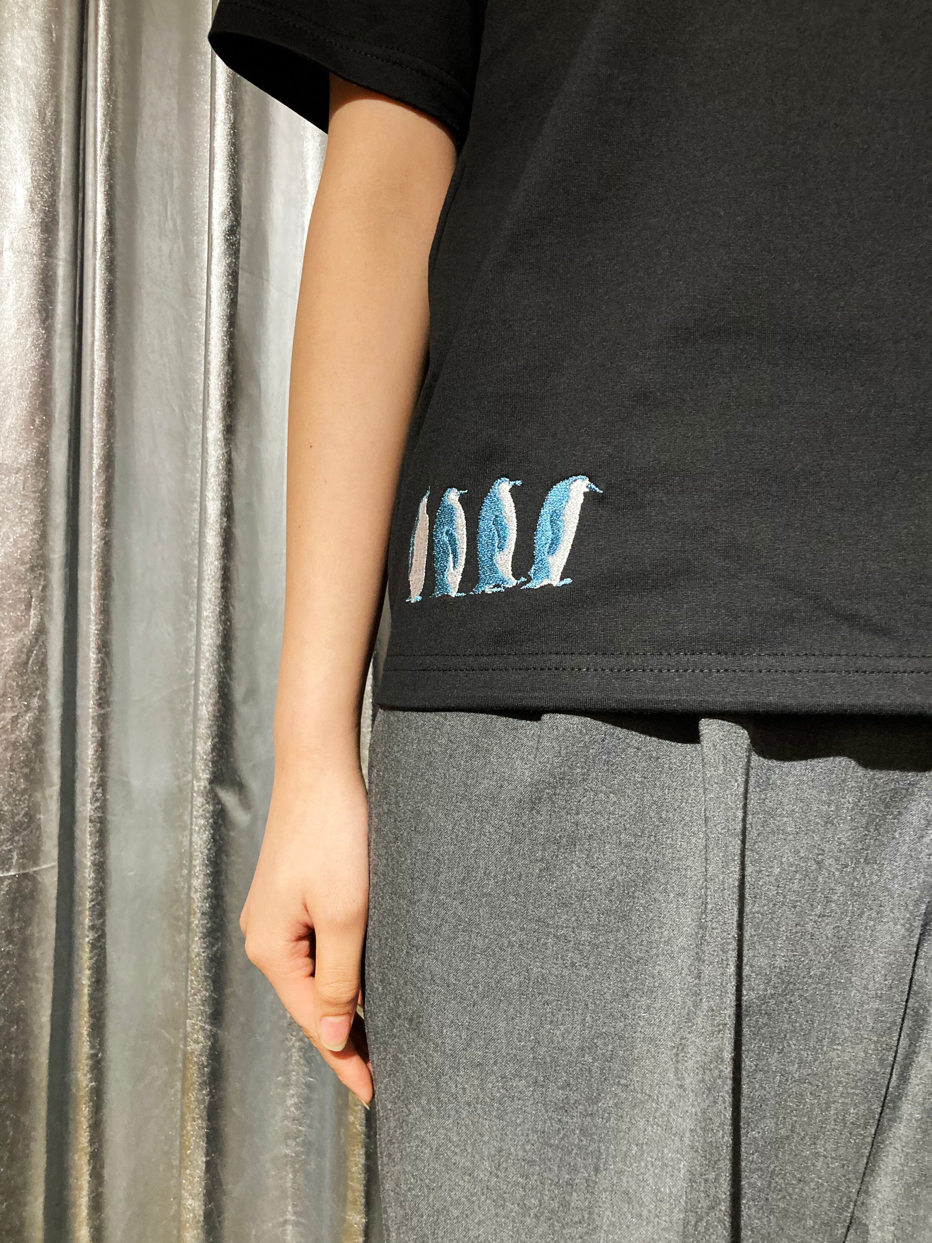 熱気球とペンギンが刺繍されたTシャツです。
