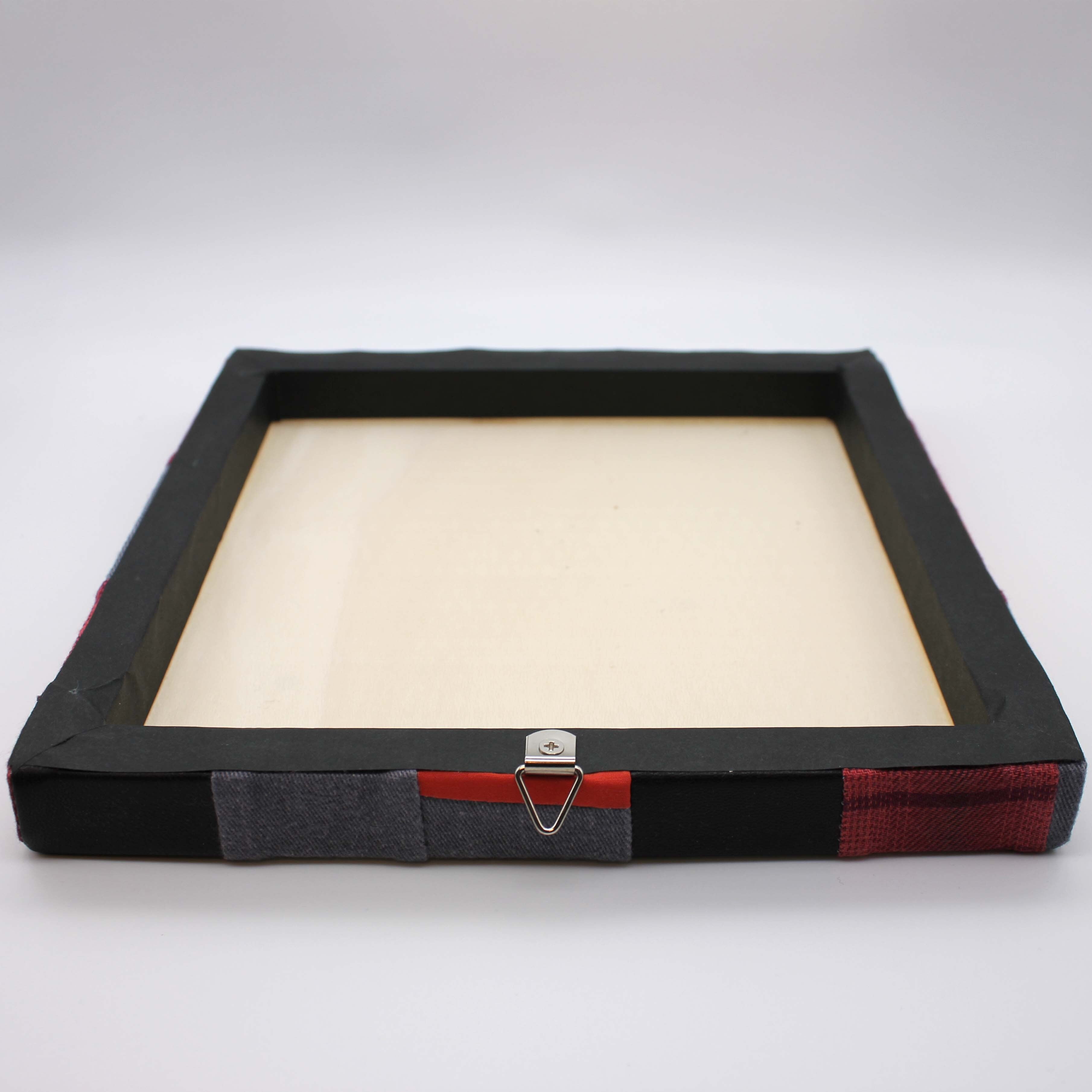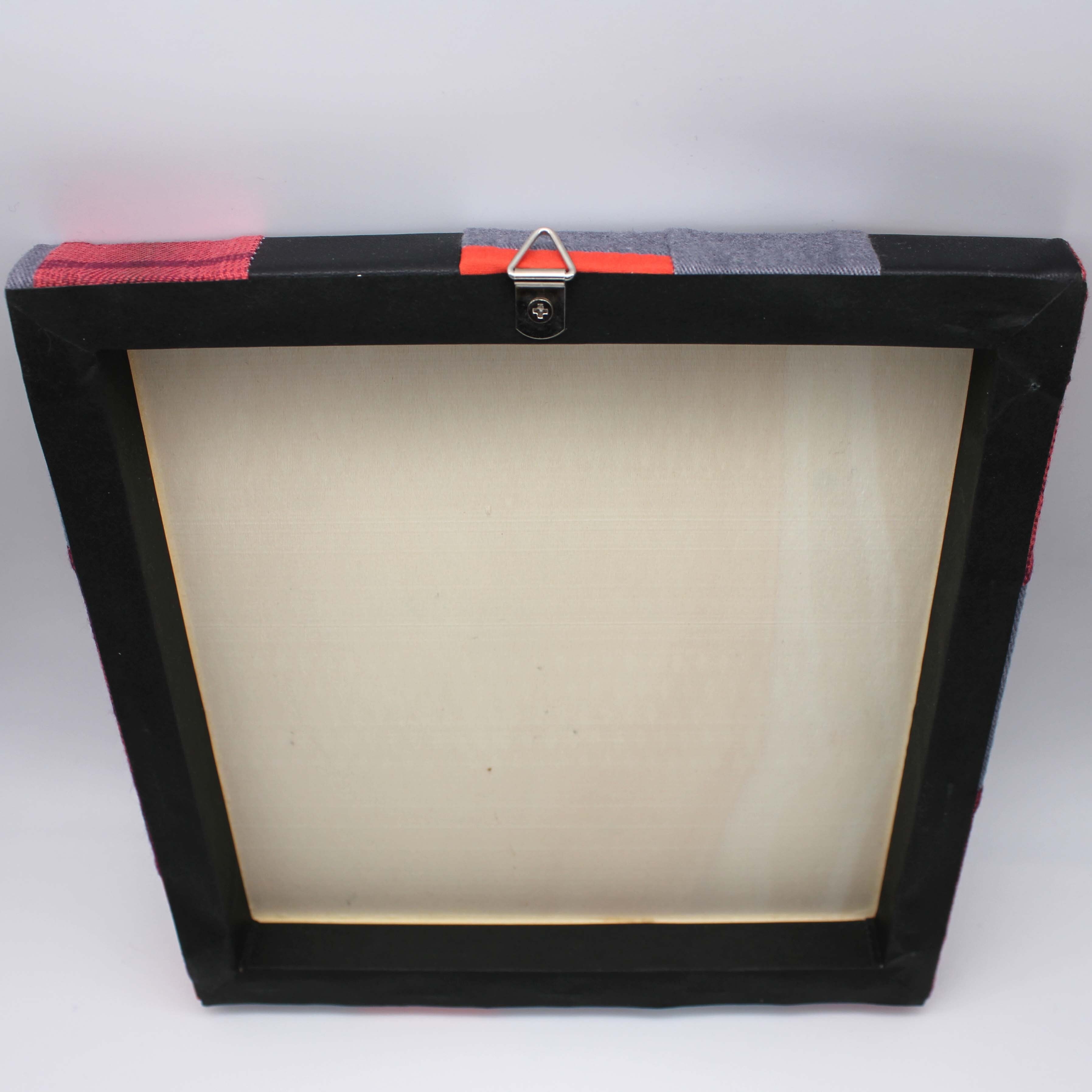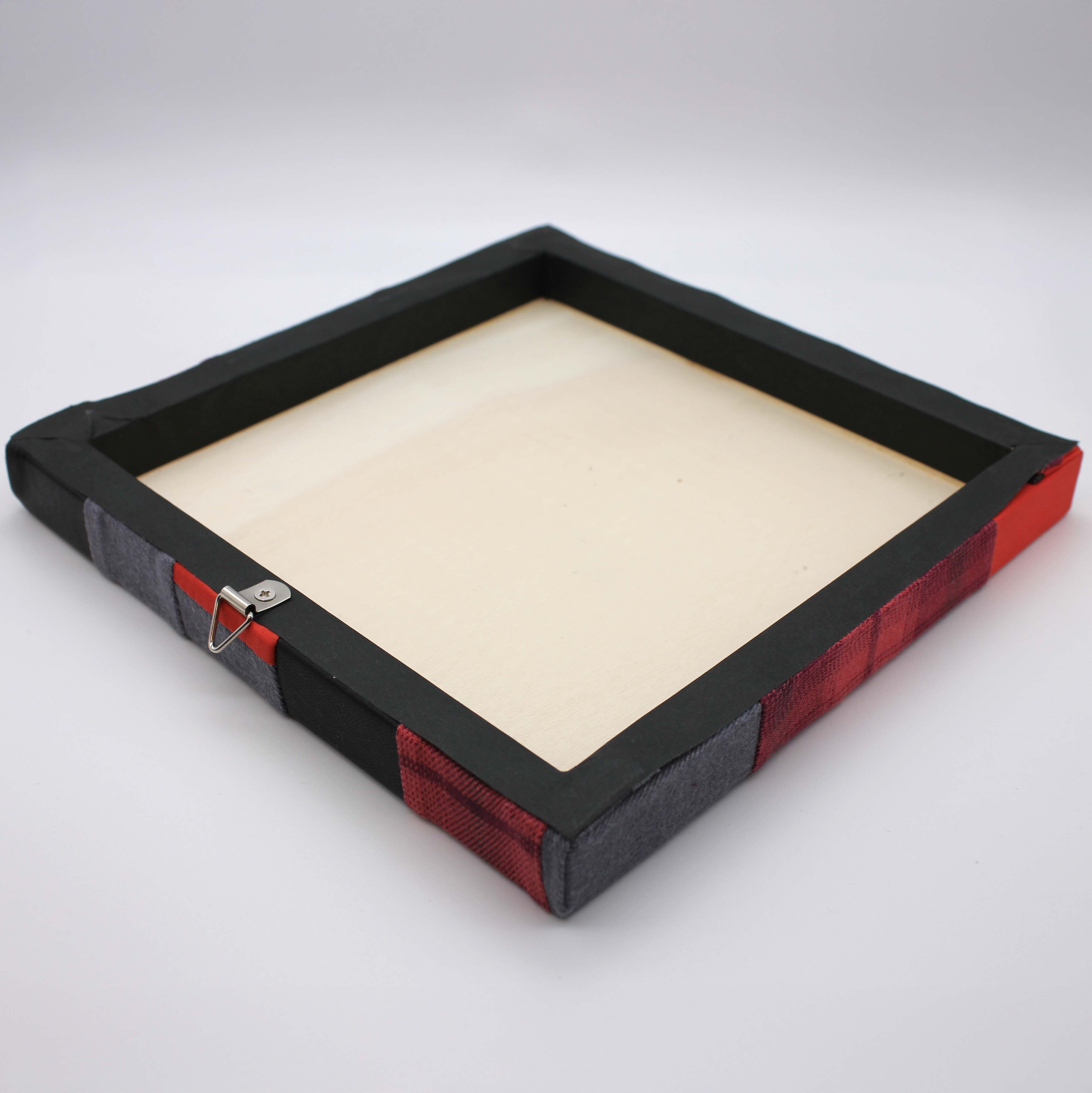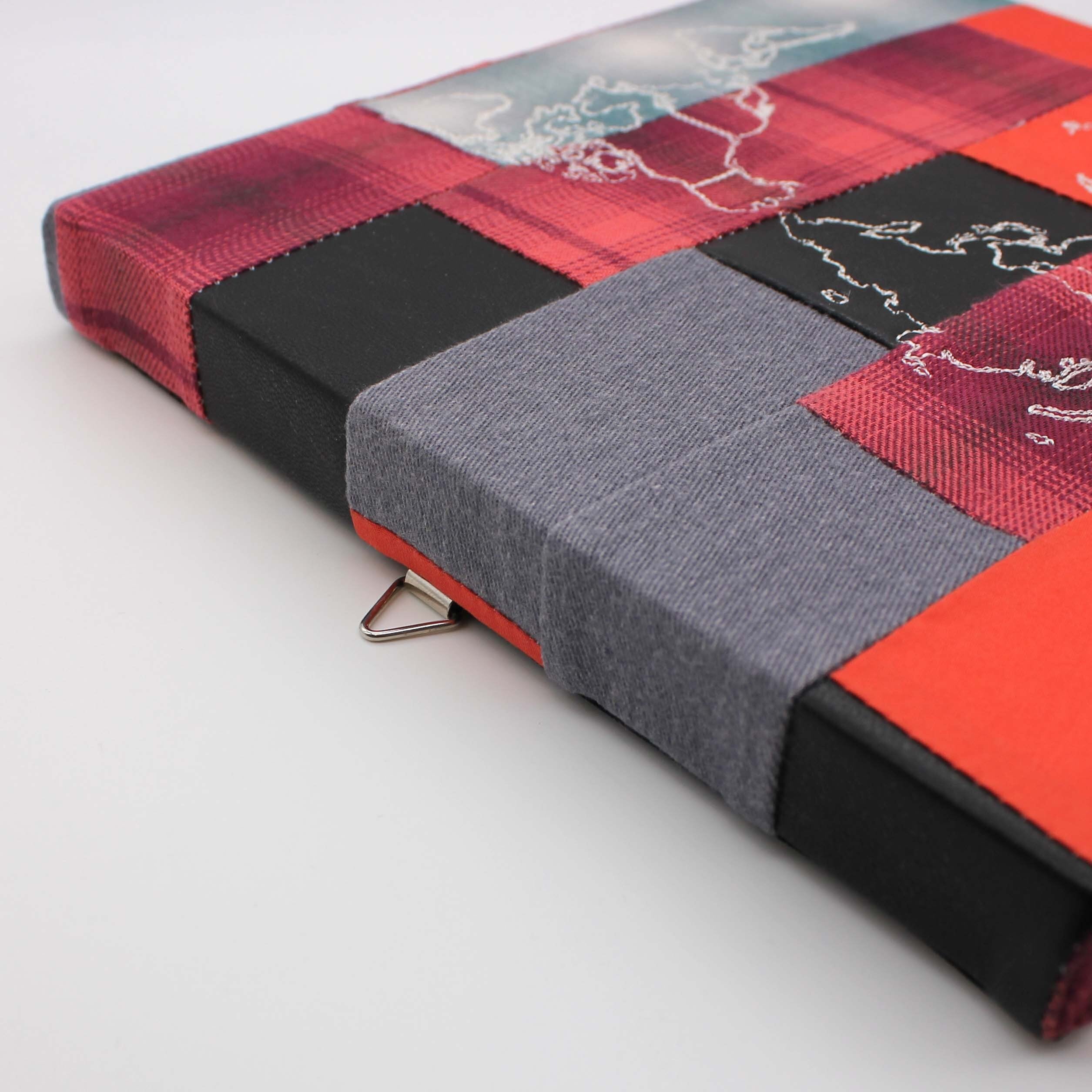 これまでの制作で生まれたハギレをパッチワークにし、その生地に刺繍を施したファブリックパネルです。