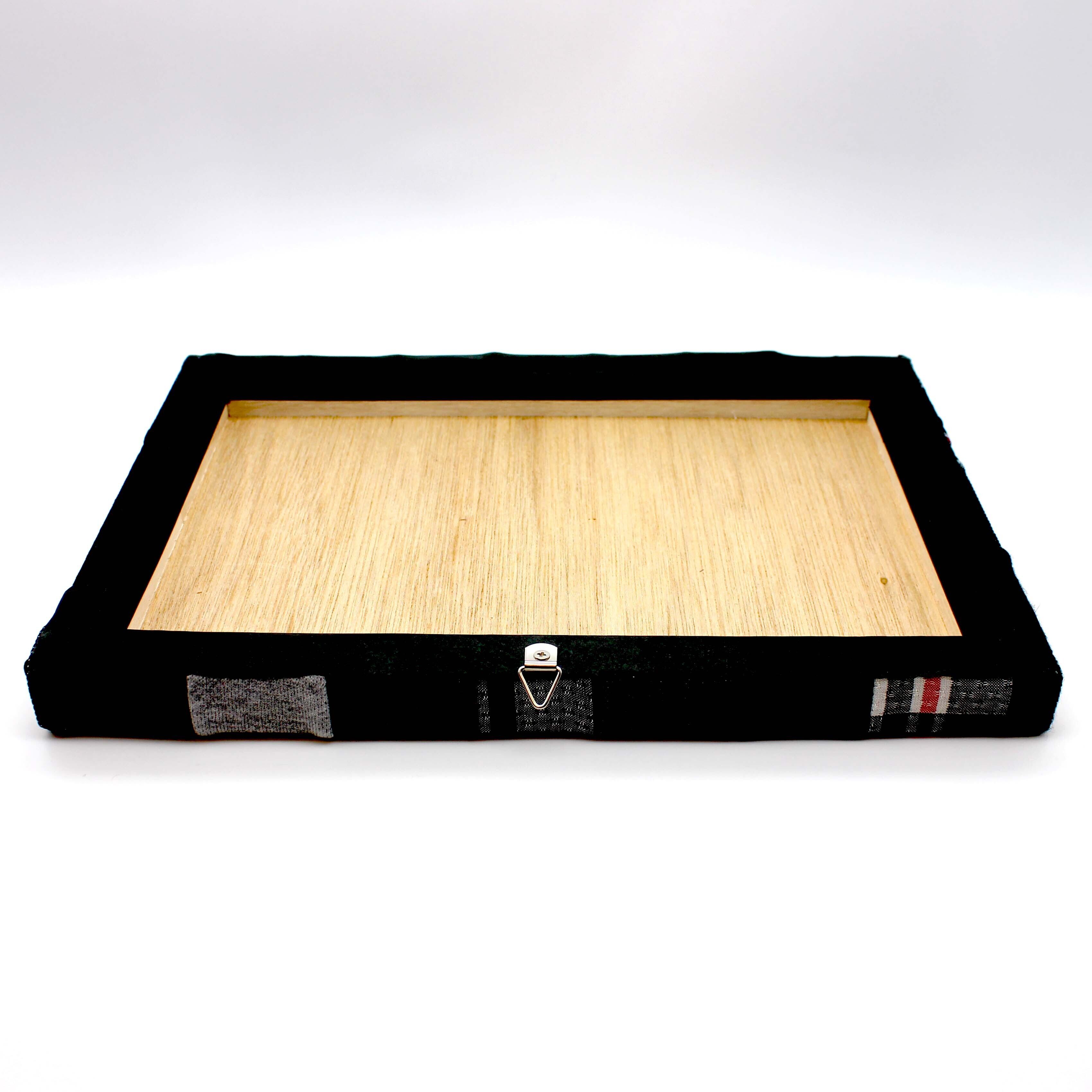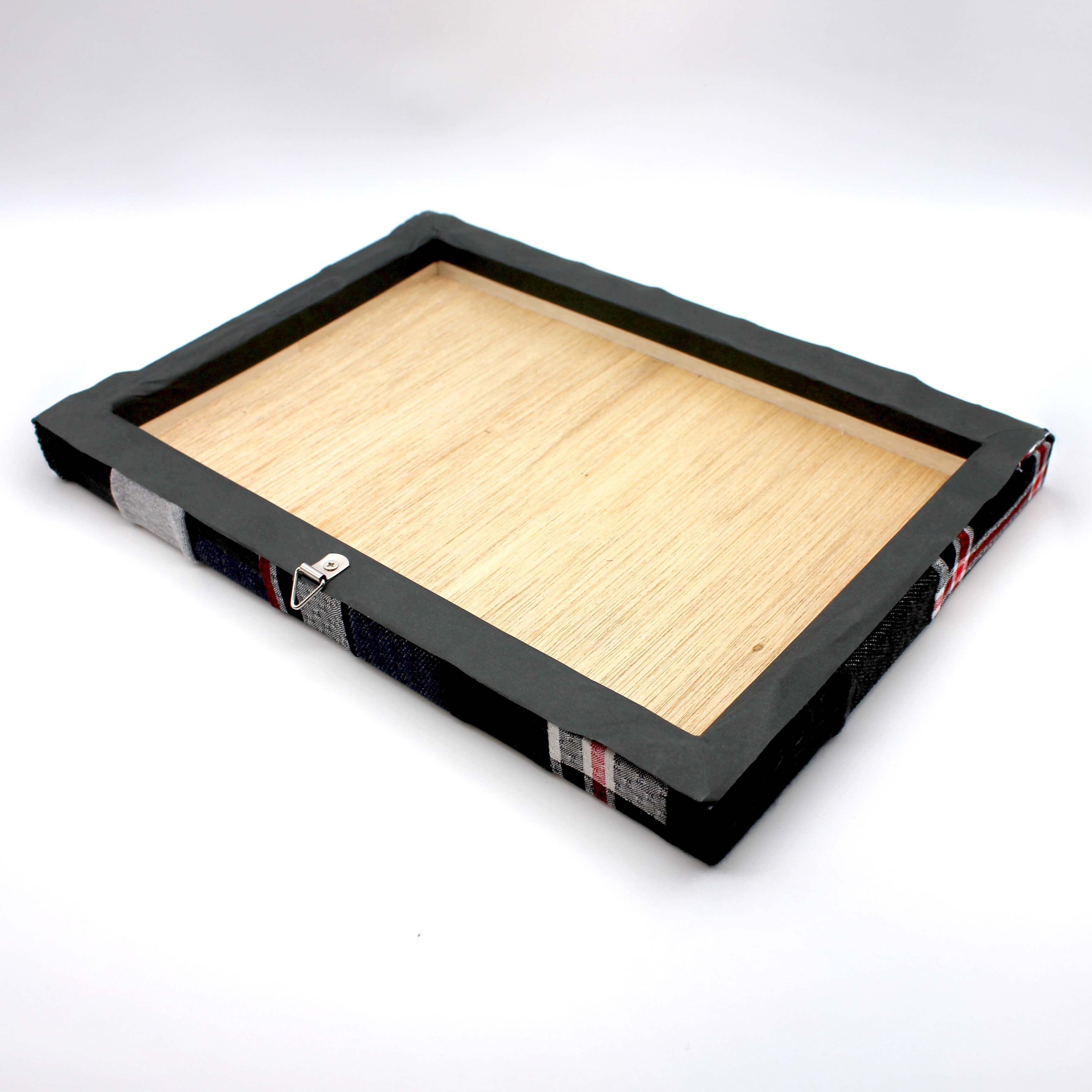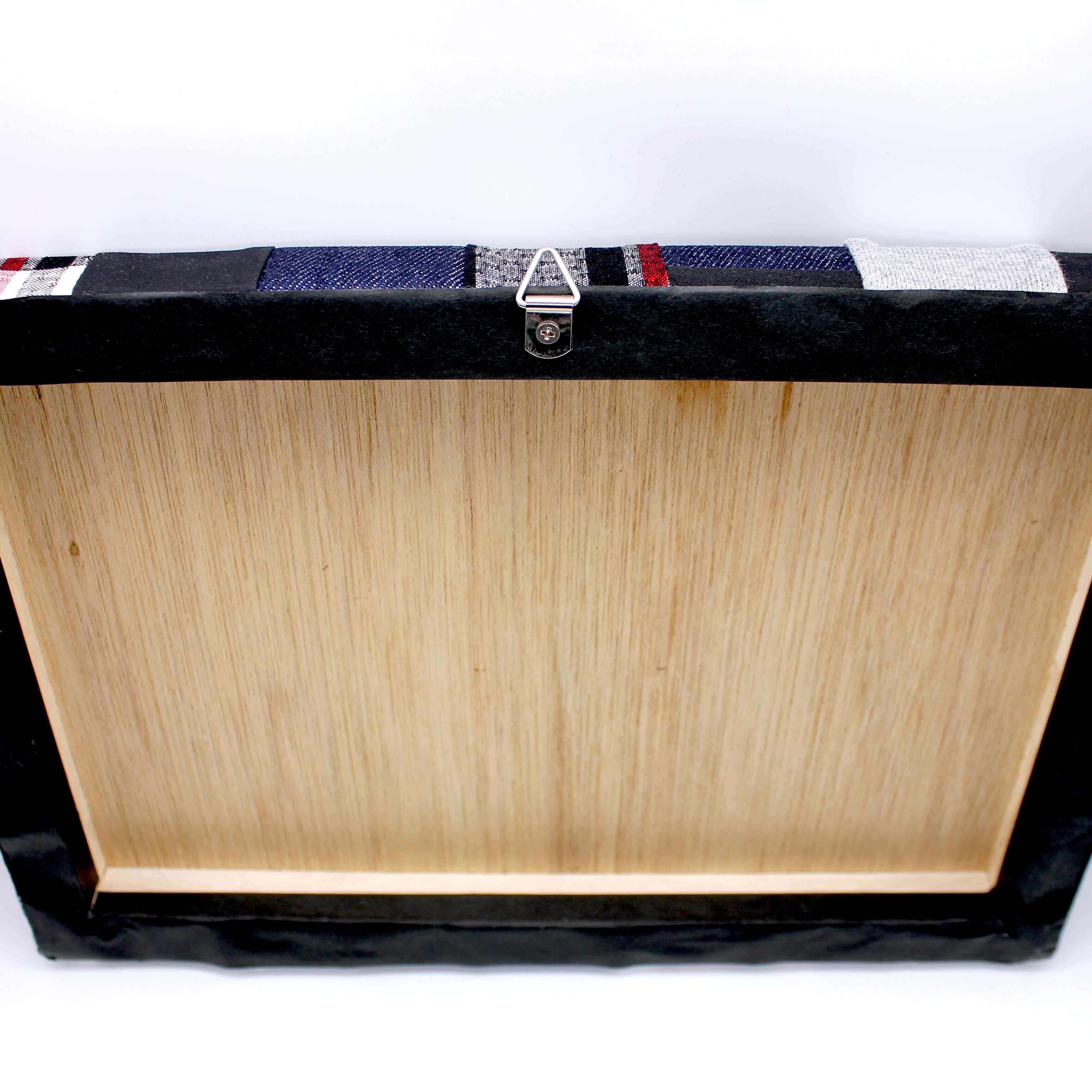 壁にも掛けられるように、三角の吊り金具が裏に付いています。