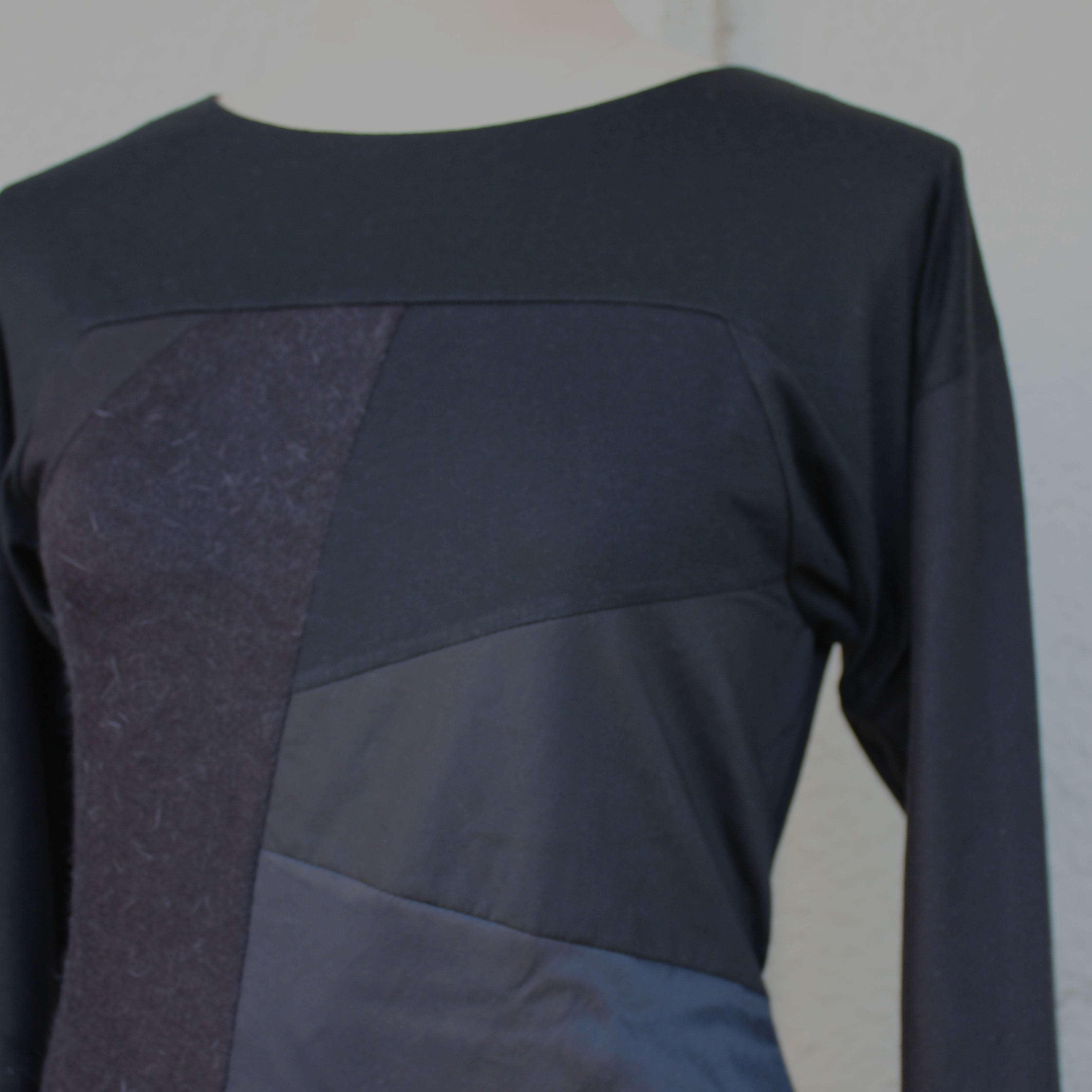 アトリエのハギレ(6種類)を使用して制作したパッチワークワンピースです。