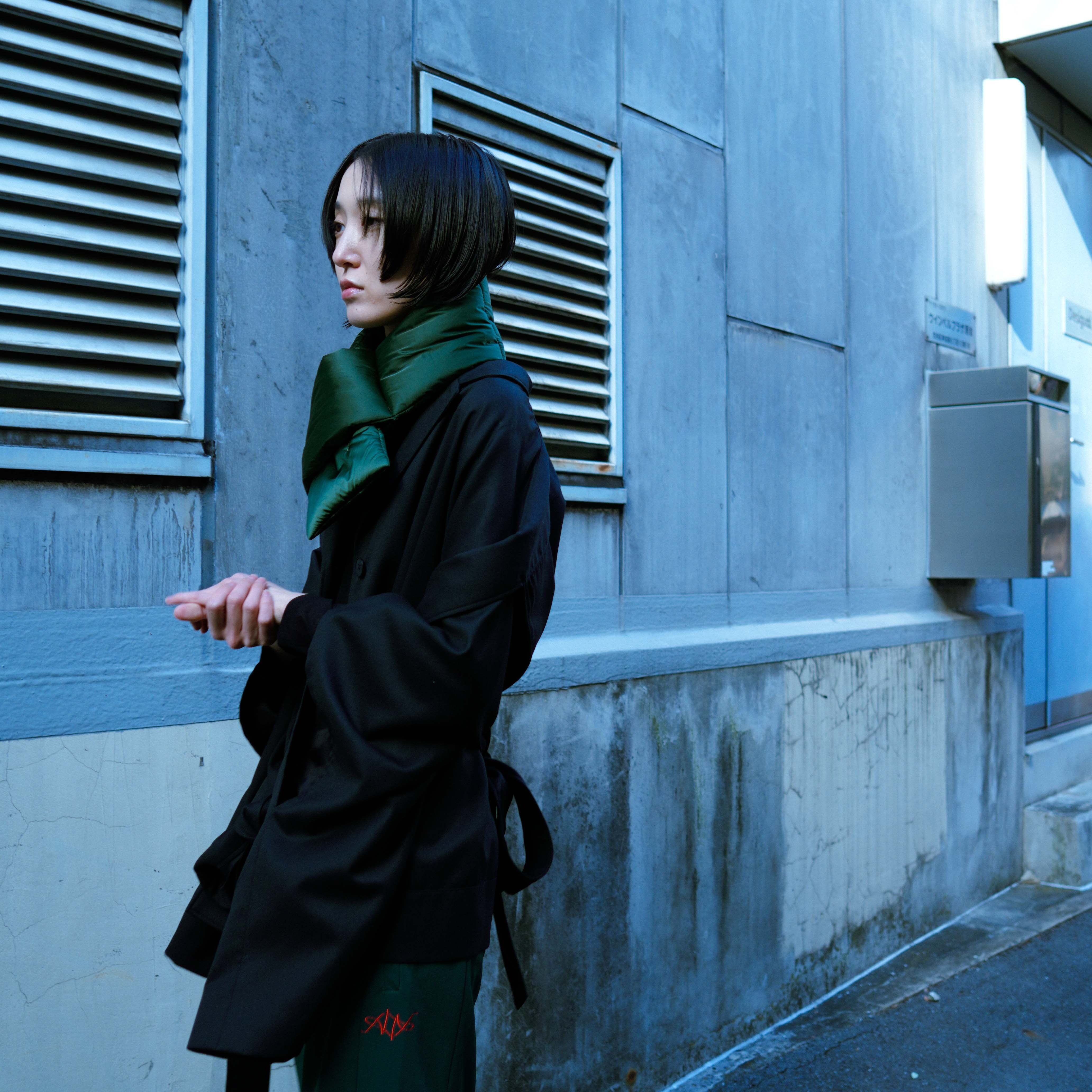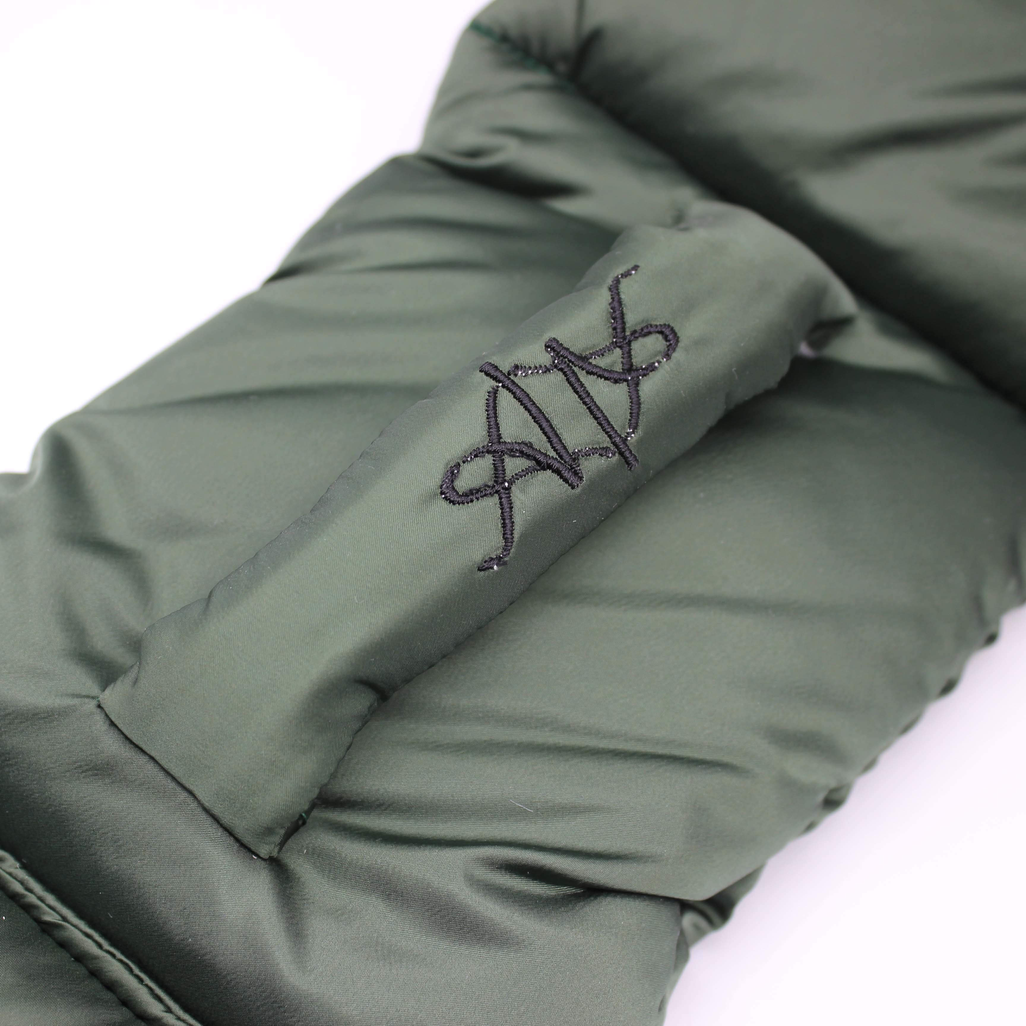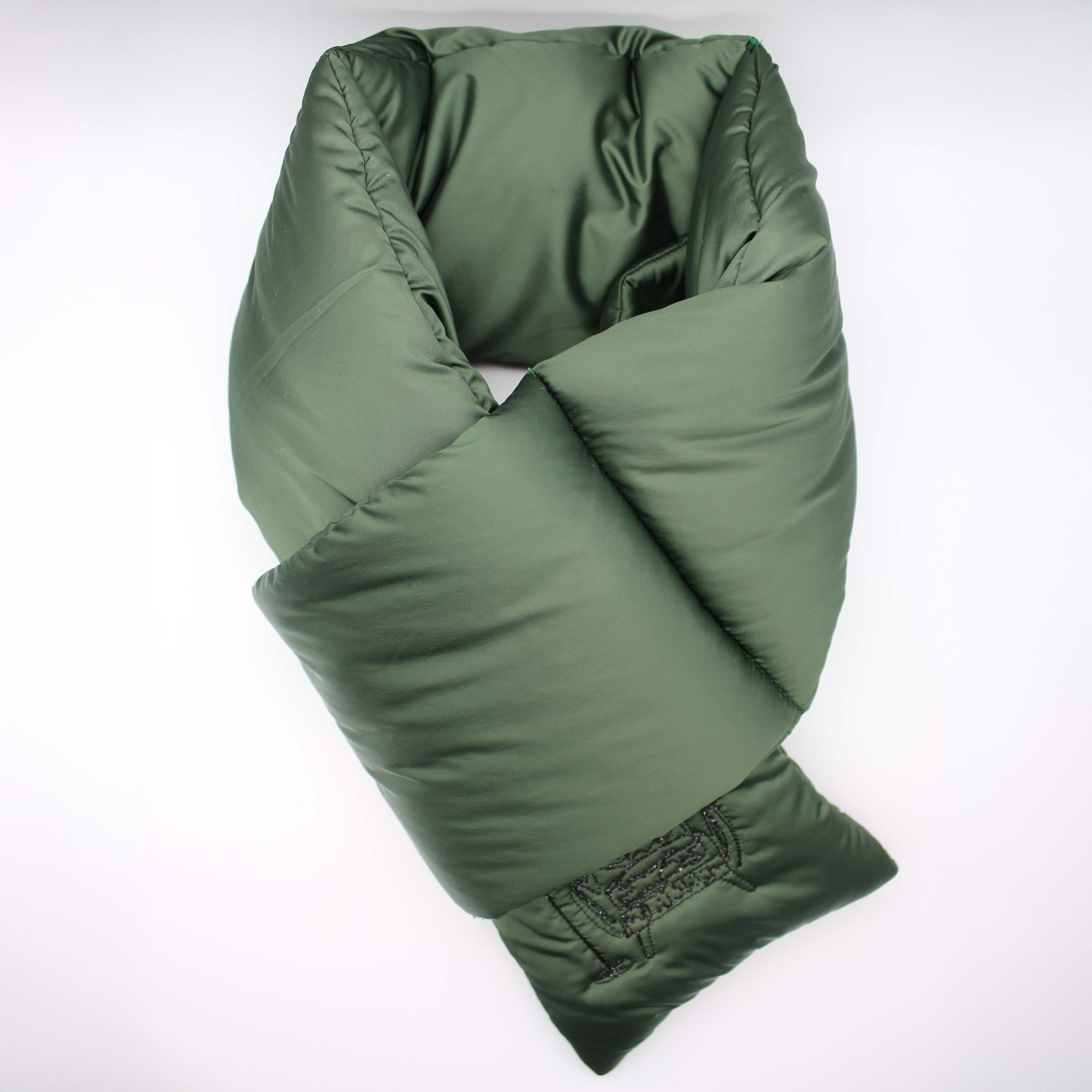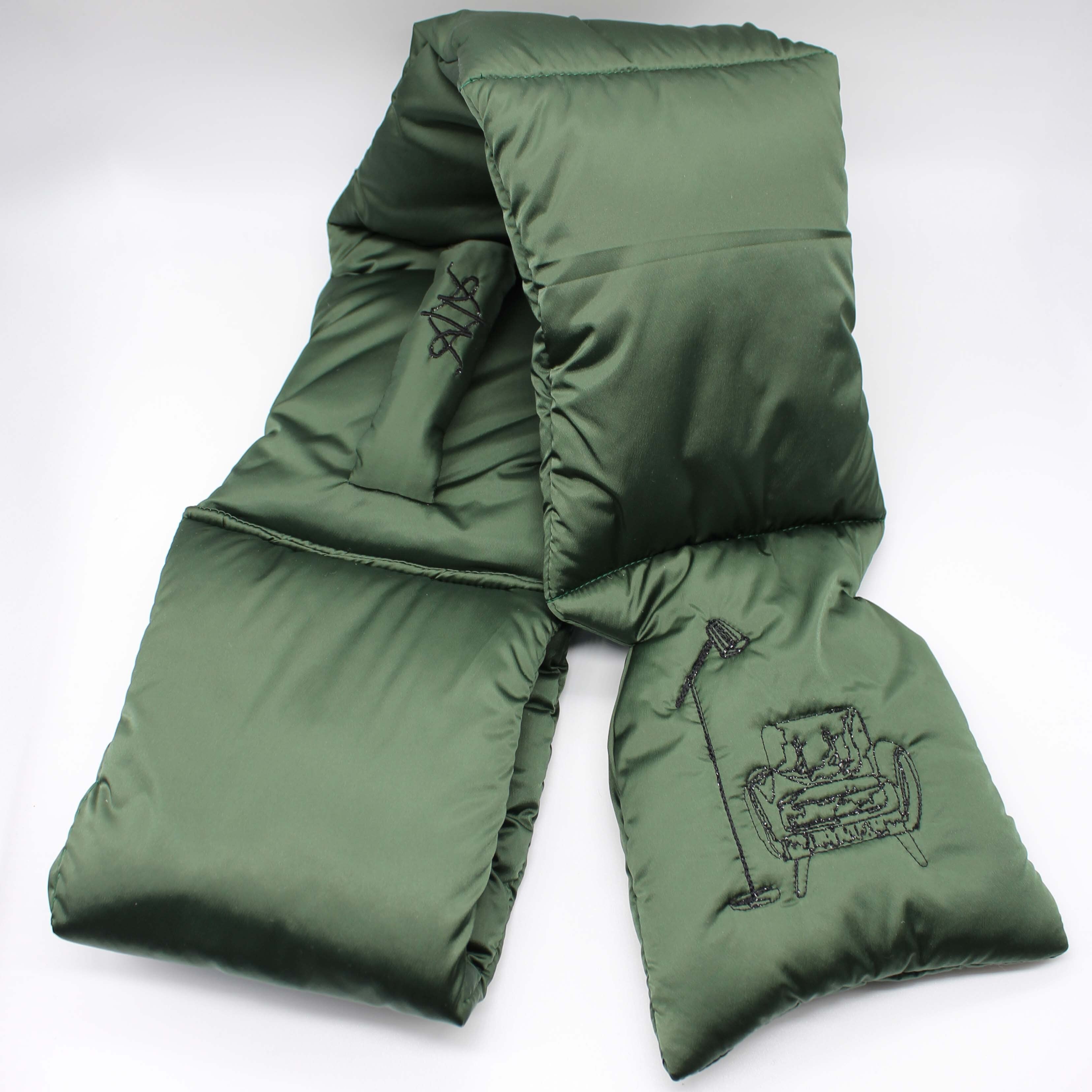 刺繍デザインが施された中綿(シンサレート)入りマフラーです。