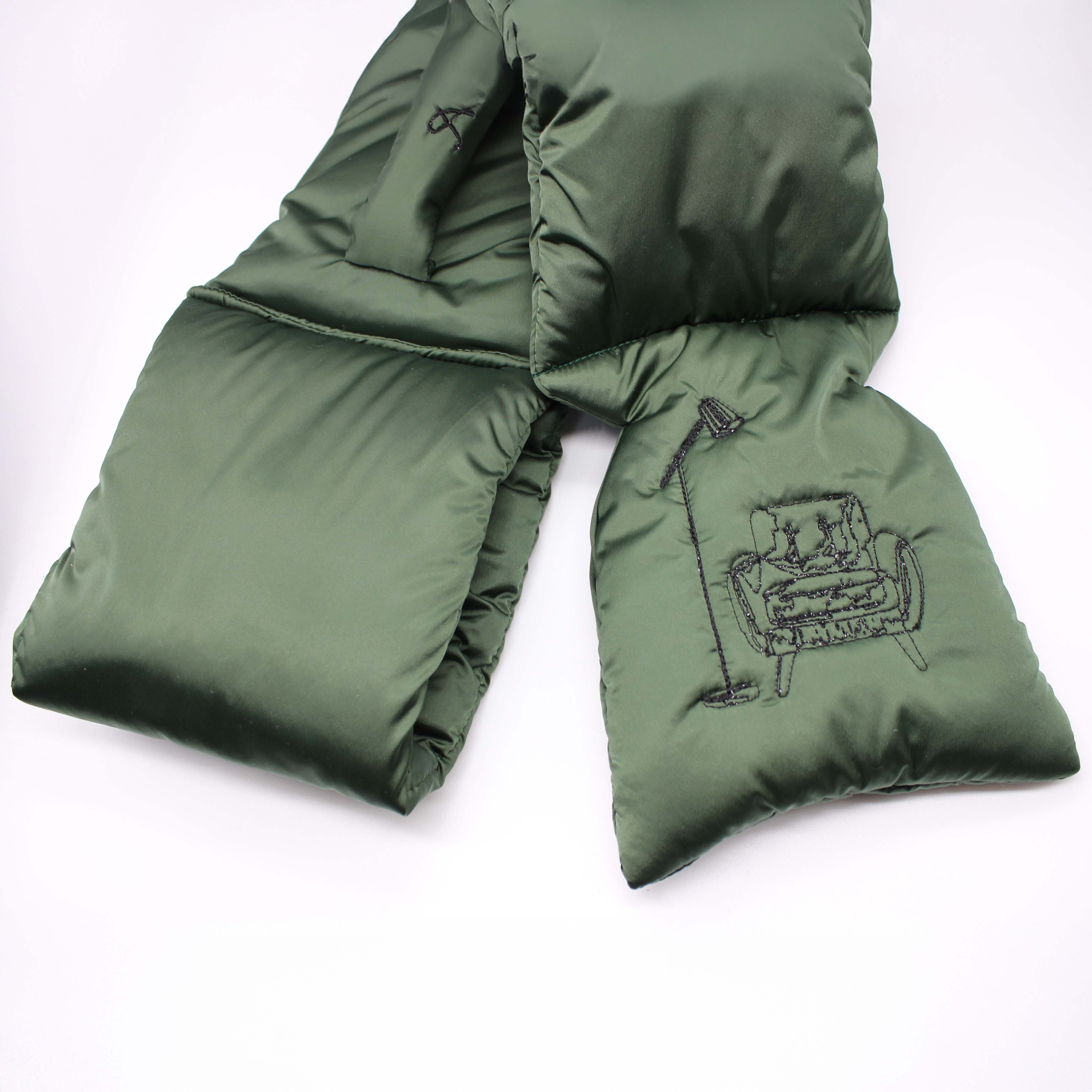 『中綿入り刺繍マフラー -khaki(sofa & standlight)-』
